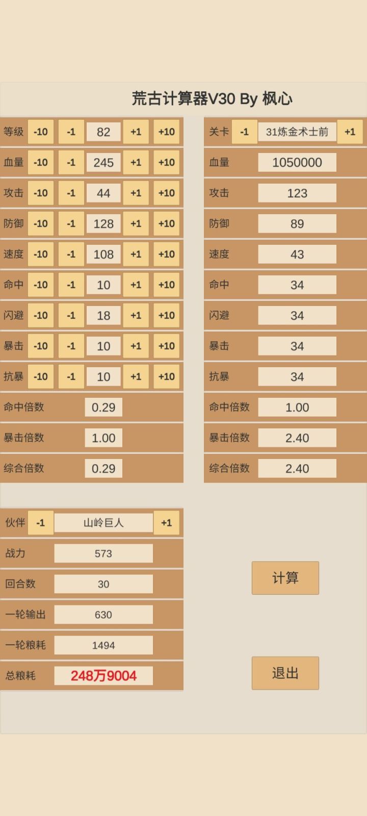 关3:树精属于福利关,全速度,150左右粮食拿下。关5:山岭巨人击败后可以招募,开启骑兵,也是打炼金的首选宠物,60级属性够可以拿下。优先攻略,其他回头再打可以省不少粮食。注意巨人前期攻击少十点,可以少十点防加在速度上。关10:炼金术士,借用群里枫心大佬的攻略,也是计算器的作者,炼金术士后期极限回血104,打不出这个伤害就不用考虑了,所以后期就是拉68攻击打出连击,剩下的全攻击。通了炼金术士