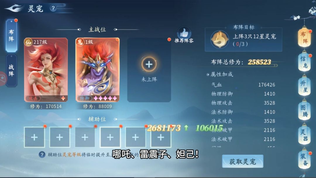 仙友们好呀! 想要轻易通关副本不再低声下气求人吗? 想要成为仙界大佬守护一方势力吗? 想要战力飞速提升屹立仙界吗? 那么一套适合你的强力灵宠阵容必不可少! 小师妹已经用这套阵容咔咔上战力了,下面请看—— 雷震子——群体控制 哪吒——强力输出 妲己——回血解控 这可是系统认证的全能阵容,集输出、控制、回血和解控于一身!而且关键是这套阵容的灵宠在活动中都是可以免费获得的,如果还没有拿全的的仙友们赶紧往