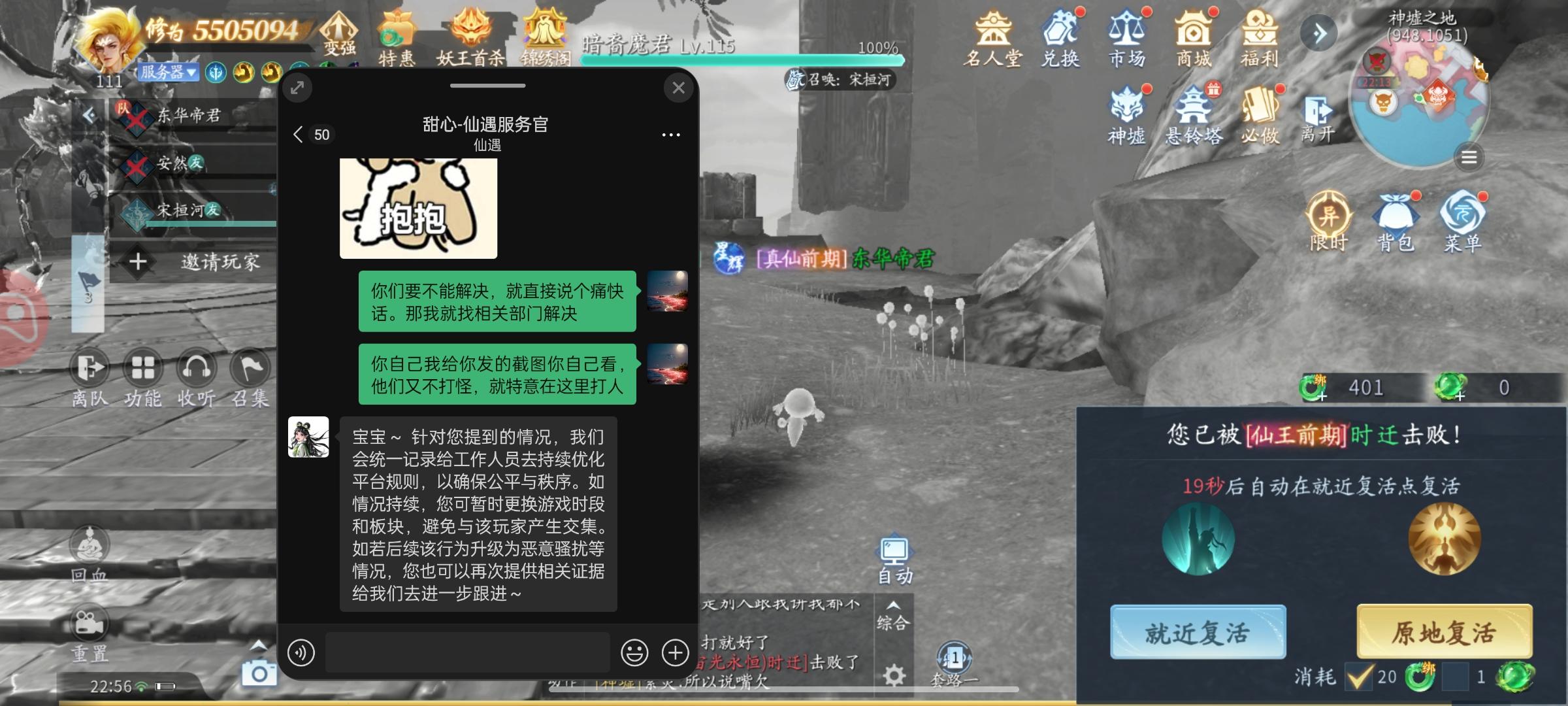 。恶意针对恶意开红,没人管。自己花钱招的怪。结果怪打不着,我一开红的也不倒。就恶意针对人。追到复活点。一个人登录几个账号。这个完全是恶意开红。一台电脑可以开四五十个账号。我玩过所有的仙侠游戏手游,也没遇到这样。问了相关法律。这个游戏里面完全是违规。昨天晚上投诉了。前面也投诉了几个,都是恶意不魔怪就恶意打人。一直追到复活点。几个账号都是他一个人的。就是这种花钱。用第三方软件。登录几十个账号
