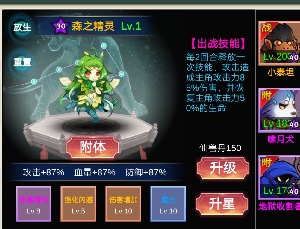 收妖 天降财富 (看视频)一定要把月卡和周卡优先买上 基本开荒介绍到此为止 大概第一天 大家玩了顺 75万战力左右 第二天 200万左右 第三天 400万左右 属性选择 前期 选择击晕配合小飞马可以越战 100万战力中期 选择连击打挑战万妖能获得更多收益 400万战力以后 选择闪避 一定要有仙兽神女以后再换闪避 (必须仙兽技能里有加强闪避和疾速) 这一套闪避流 对斗法和闯关收益很高 最后就是这