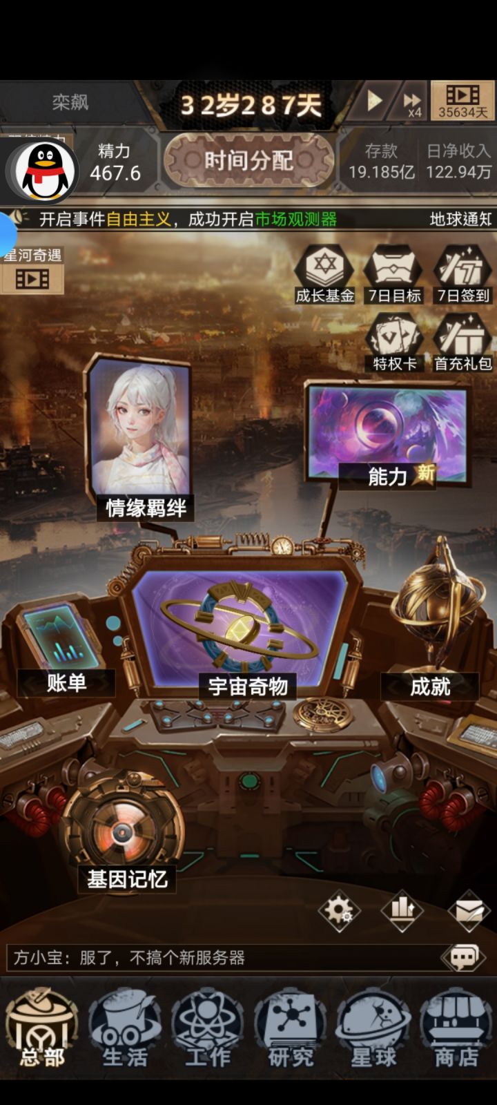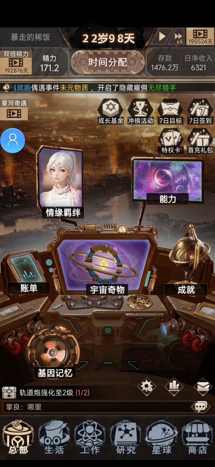 为了有更沉浸式的游戏体验,进入前请深呼吸~你是末日堡垒的一员,掌握着时间回溯的能力,可以不断回到18岁的当天。你需要合理分配时间,探索科技的极限,解锁更高级的地球防卫武器。是跟随地球一起毁灭还是为文明寻找一线生机,地球的命运都将由你来决定!这里有一份末日大礼包,请您一定要加入领取,策划也将在群内和大家讨论攻略~专属客服反馈,2853877292 【本贴加群活动规则】评论留言:已添加