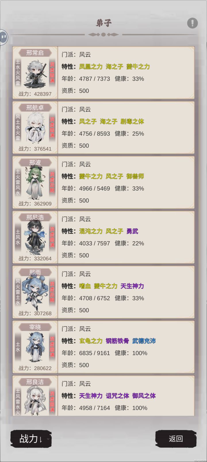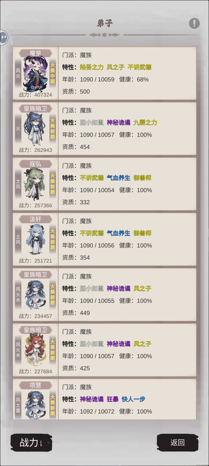 一款修仙宗门游戏,招募弟子,修炼,炼丹炼器,配种。