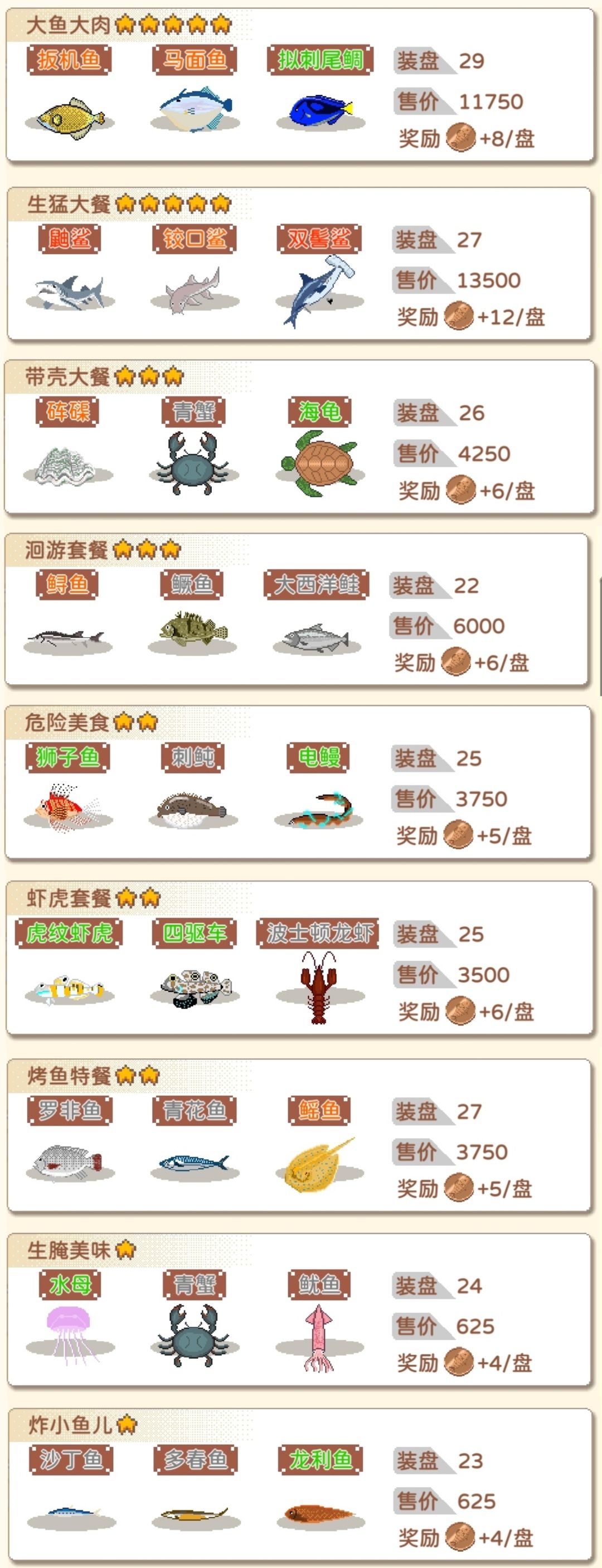 烤鱼套餐全图鉴(共29种)