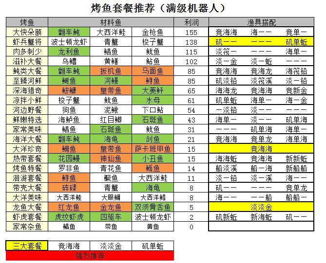 #烤鱼大餐 整理了一下烤鱼套餐中鱼需要的鱼具 P1P2 五星 P3 四星 P4P5 三星 P6P7 二星 P7P8 一星 最新的烤鱼大餐攻略来自论坛大佬1