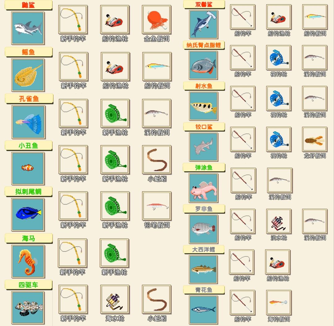 钓鱼全图鉴(共72种)