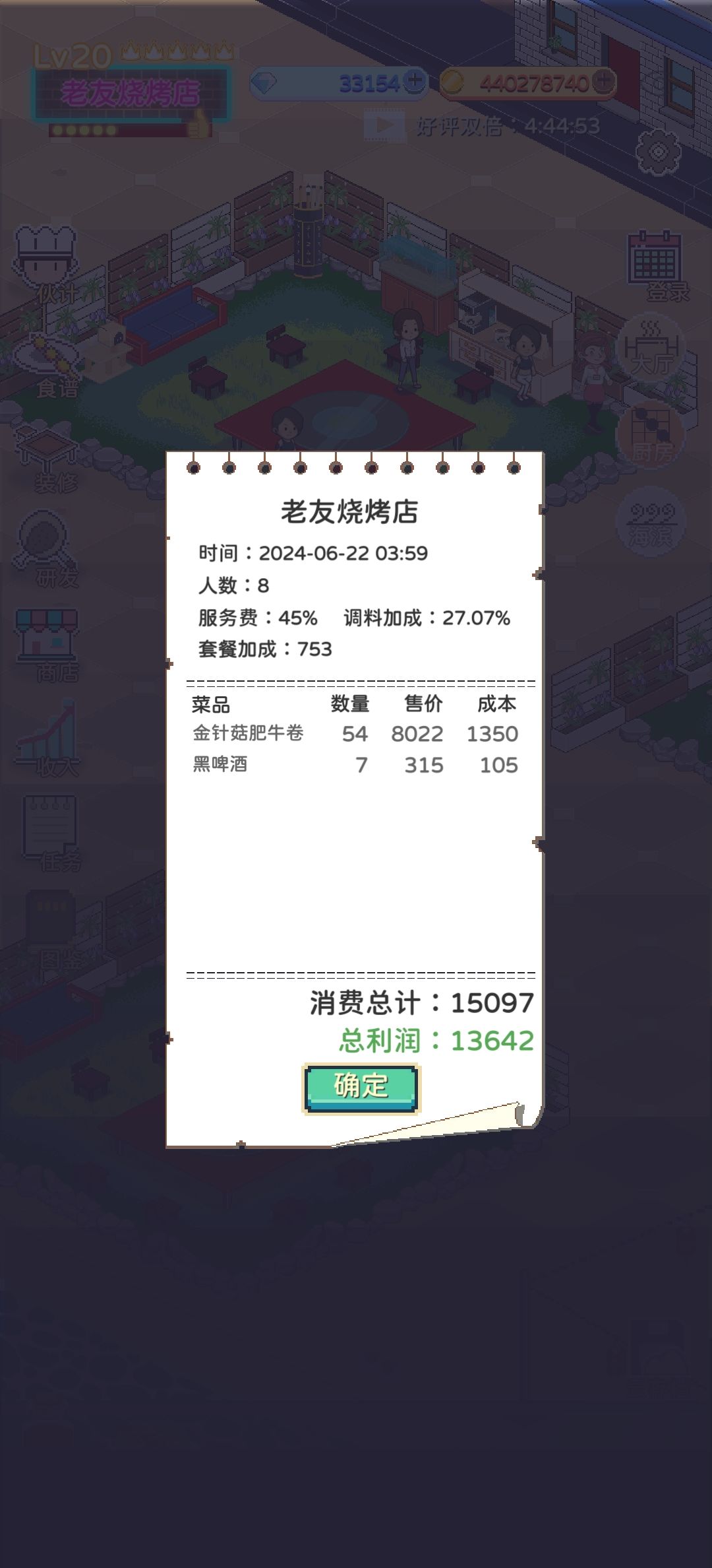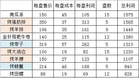 既然是经营一家烧烤店,那烧烤的食物自然是重中之重。 各位烧烤店老板可以通过食物研发获得各类新的菜式,研发用的素材可以在商店购买,也可以通过游玩游戏内的抢红包小游戏进行收集。 所有的食物,都会包含进价、售价和装盘数量这三个属性。 装盘数量决定了,每进行一次烤制,食物可以被分装成多少盘,顾客点菜的时候,是以盘为单位来点菜的。装盘数量越大,烤一次就能满足更多顾客的需求。 进价和售价,指的是单一盘食物