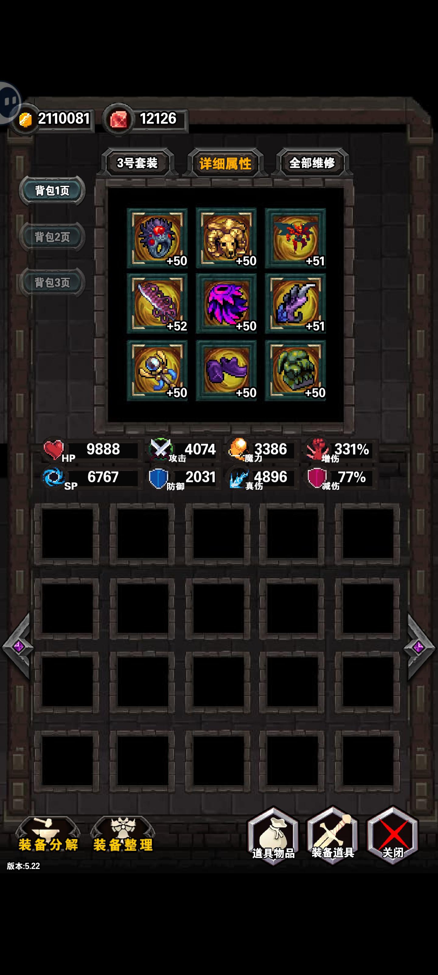 400层之前保留装备碎片,400关后直接兑换比较大概率出 创世装备,凑创世就行400关之前打仔细一些,主要强化武器和衣服,凑多点砍杀,就是比较浪费时间凑装备400关后反正随便都是秒杀的,除了挡着下楼的,其他都懒得打