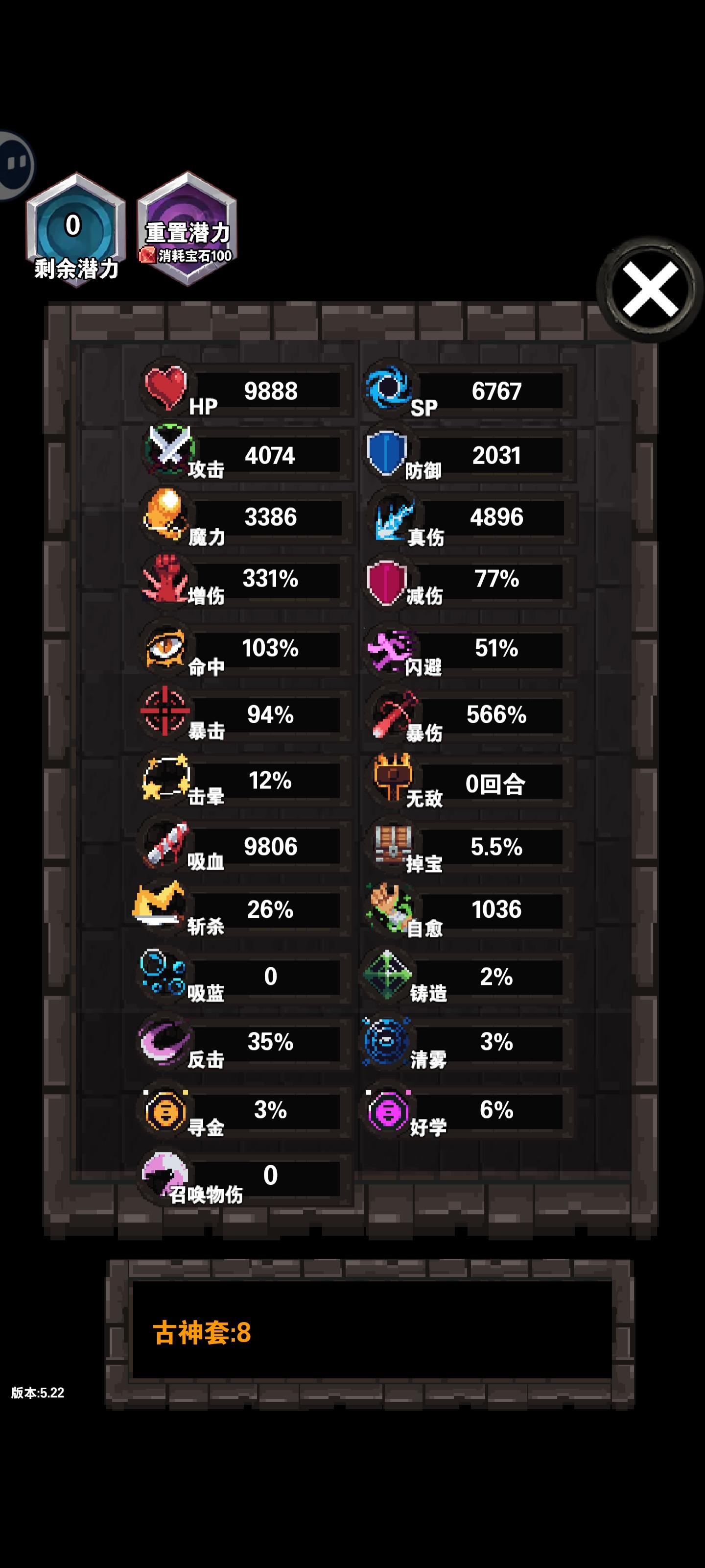个人认为的5.22版本最强套装。对于Boss只弱“暗域之主”(与其战斗时可以轻松快速吃到上万层毒的增伤,代价是玩家很快暴毙),除了“毁灭之龙”在伤害强化到6亿(普通模式3亿)后可以击杀,对于其他Boss都是300回合内速杀。强烈推荐培养●装备特点▶毕业套全套最高魔力面板,同时蓝也不低,直接玩技能点电主动,开技能时魔力会给额外增伤,带来更高伤害的同时续航完全没问题[吸血=(攻击+魔力)*增伤