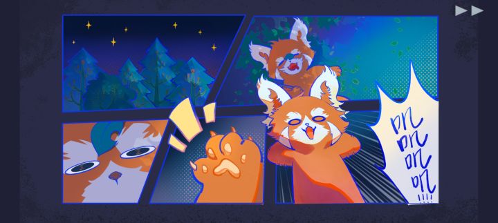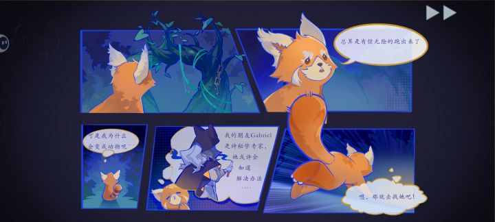 刚进入游戏的画面就非常好看,景物很有层次感,和故事背景也很符合,音乐也很灵动活泼。画面动态摇曳,搭配向内延伸的树丛,有小熊猫第一视角的代入感。