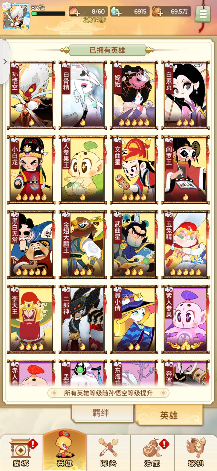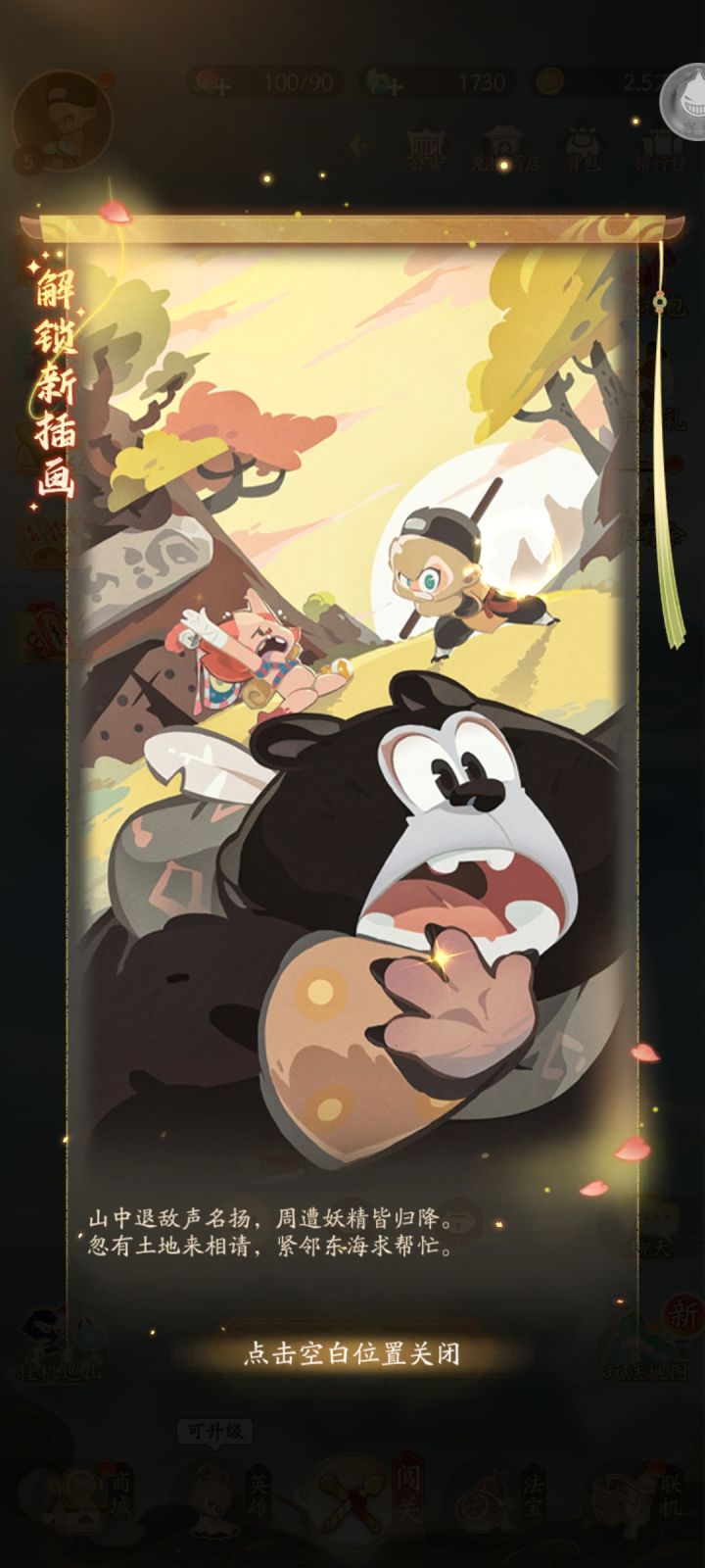 说实话,这类玩法我见过不少,但还是因美术画面点了进来,算是在1代的美术功底上不断迭代,画面感跟精细度更迎合了现在游戏市场的泛用户,在插画方面很有辨识度,整体焦点在西游+国风+神仙,而这些本就是焦点,再些结合上美影动画风格,难免会有些熟悉感,难免会更吸睛一些。
