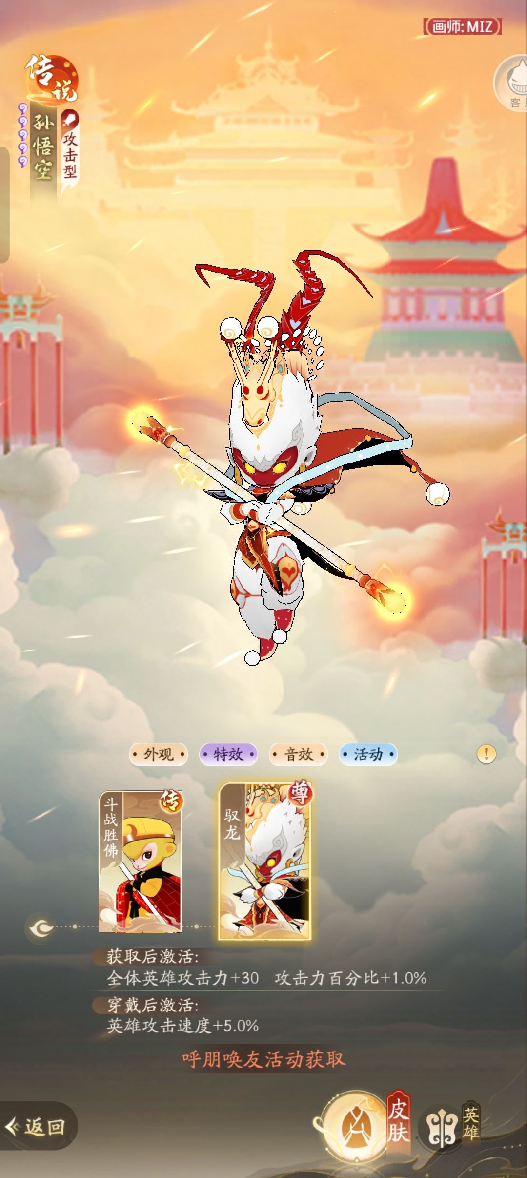 (十)呼朋唤友活动,这个活动只需要你邀请三位玩家充月卡或者赠送月卡给你邀请的玩家,完成相应任务就行了,当然可以自己开小号充月卡完成任务获取孙悟空的至尊皮肤––御龙 (十一)协作共斗玩法,这个玩法比较难,需要玩家和大佬一起打,不到10000攻击力可能都打不过难度6,但是让大佬输出,自己辅助,这样会比较轻松,如果自己找不到大佬带,那请玩家还是放心扫荡。协作共斗辅助阵容选黑白无常,紫人参果,白骨精,二郎
