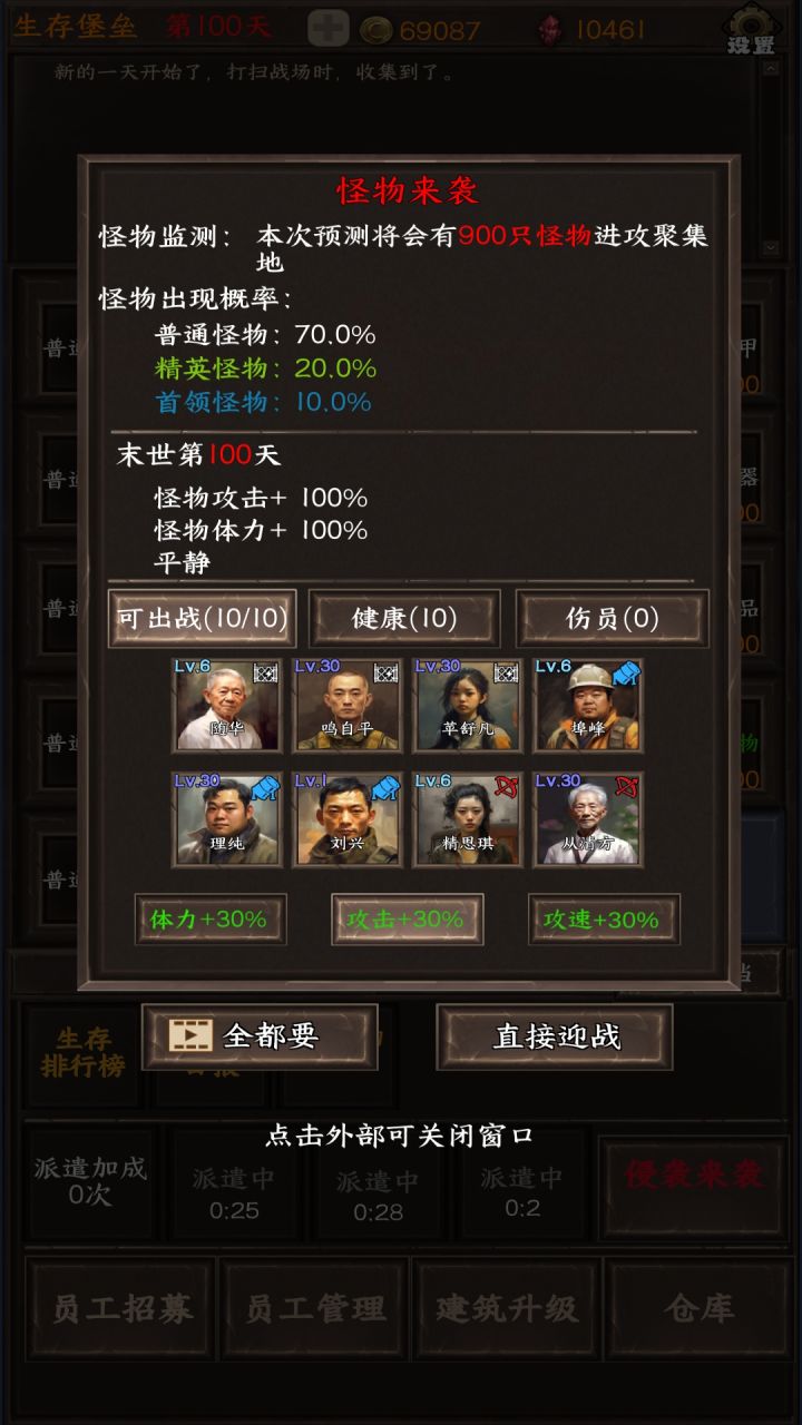 生存百天打卡,现在追求只剩下刷满属性员工了。到今日已经生存第100天存储声望90711通讯终于恢复了,并且有新的技术可以增加聚集地的粮食棉花药材产出,相信以后会更好未来几天雷阵雨频发,污染度高,会出现大雾污染,请做好防护,无必要不要暴露在雾中(每日第一次分享送380金币。)