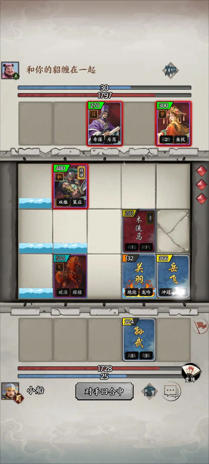 最近我们蜀国新增金关羽,可谓热度拉满。奈何家境贫寒,每天就充8块钱,等过一个星期才能组合出金关羽阵容(理想情况是 月英金关羽牛马李严庞统)。所以一直在实验其他阵容,无意中规划出这个阵容,个人感觉非常好用,特来tap和大家讨论。思路分析:1.必备条件:月英5技能,效果获得行动点时随机减一个角色cd。诸葛照明将星 (对面明牌 然后决定打牌思路)牛马那个靠近会获得行动点将星(配合月英)2.对局行