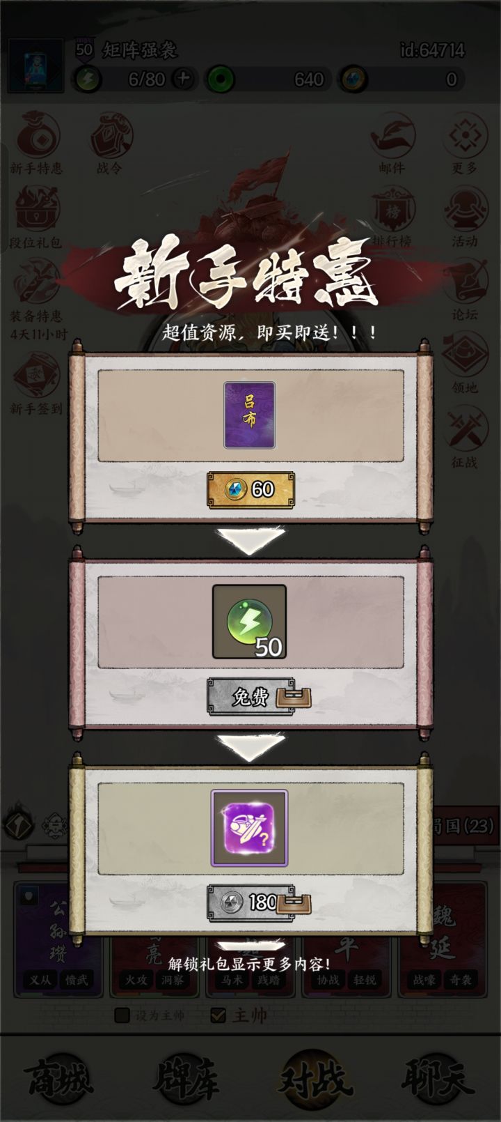 我是一个新手,之前看过大佬豹子头零充的攻略,用这套大佬的阵容冲上王者之巅的。这游戏玩季汉挺有趣的。1.新手尤其要注意到宗师的时候卡一下段位凑齐你想要的个阵营的武将以及所有宗师能抽到的群雄武将凑齐以后在上挑战赛积分段位。2.所有礼包码都要用到给的不少资源的,我得公孙瓒就是在碎片礼包码随机到的直接就用了。至于这个马超的装备是我在挑战赛段位1000多积分的时候就打对战的时候给的。多打估计各位也能拿到