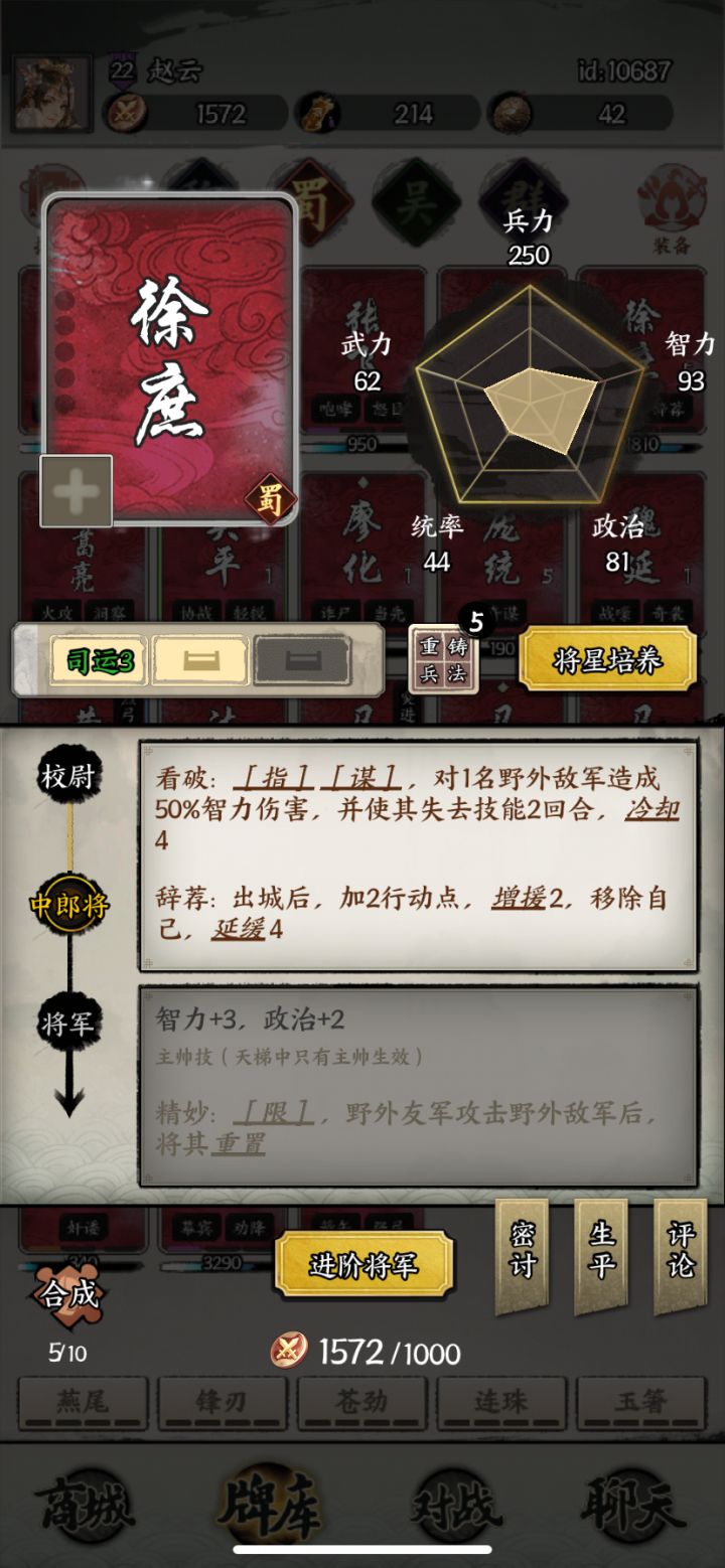 我是一个新手,之前看过大佬豹子头零充的攻略,用这套大佬的阵容冲上王者之巅的。这游戏玩季汉挺有趣的。1.新手尤其要注意到宗师的时候卡一下段位凑齐你想要的个阵营的武将以及所有宗师能抽到的群雄武将凑齐以后在上挑战赛积分段位。2.所有礼包码都要用到给的不少资源的,我得公孙瓒就是在碎片礼包码随机到的直接就用了。至于这个马超的装备是我在挑战赛段位1000多积分的时候就打对战的时候给的。多打估计各位也能拿到