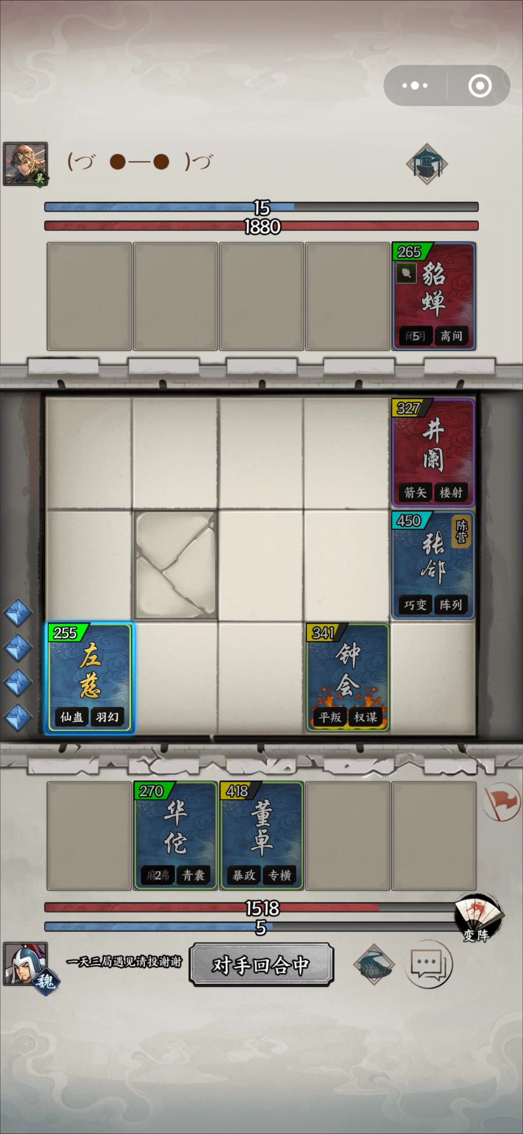 董卓出了个城,后面就一直不能操作。只能看到对面两个武将