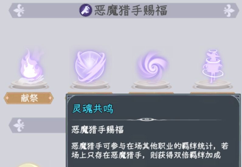 新人过了4-3,继续推图推到卡关。此时把恶魔的第四赐福灵魂共鸣刷出来(100k解锁),一般前期如果用恶魔主c,此时应该有30k积累了,一个3-3可以刷10k,刷七把就可以开出来,顺便还刷了新手7日任务的35个boss。刷小怪、boss,去打体力副本。对于所有任务,精英副本、绝境求生都不计算击杀数。解锁了灵魂共鸣,推图就简单许多,甚至可以越战力了。灵魂共鸣可以做到多羁绊,而羁绊是对全体魔女有加成,对