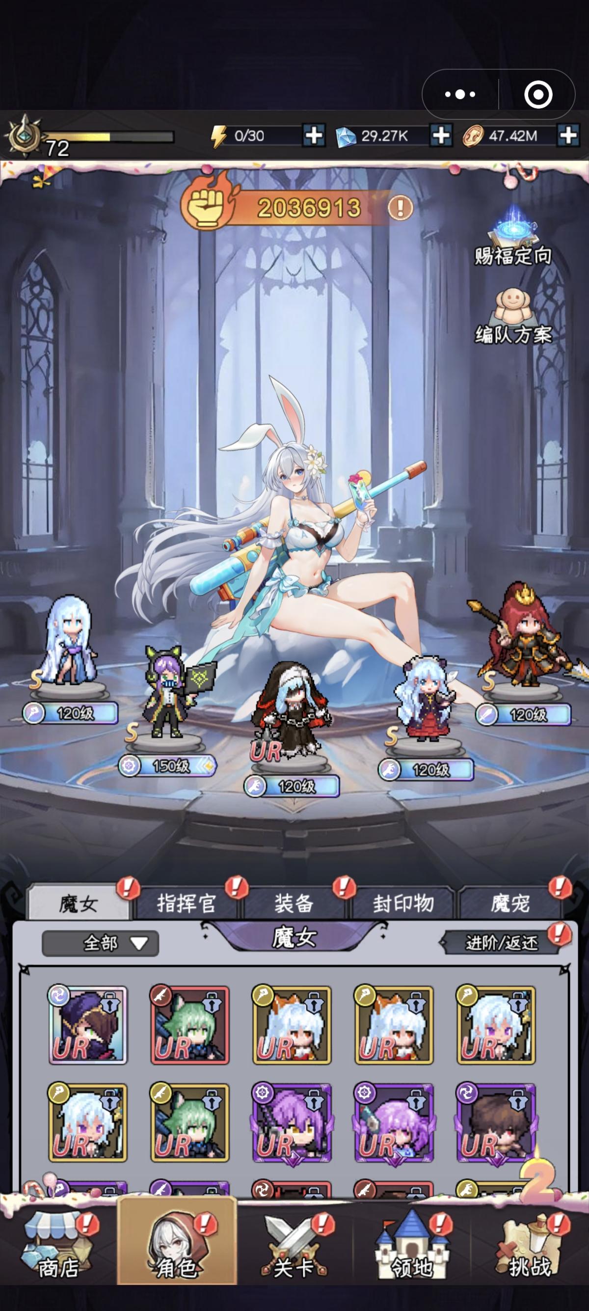 1、请记住,这是一个比耐心耐性的游戏,欧皇有那么点儿用,但没太大用。只要你玩的够久,自然可以熬死很多人,而且越是万氪大佬,越容易脱坑。 2、这个游戏有茫茫多的礼包码,开玩之前,尽量多去找找各类礼包码领完,事半功倍。 3、相对来讲,下午和晚上开的区,人会更少一点,更利于上榜。 4、不要过于纠结开局没有优质魔女的问题,我当初前两周没有一个s魔女和ur魔女,靠着红影魔拿下的魔王和极限。现在开局充值会直接