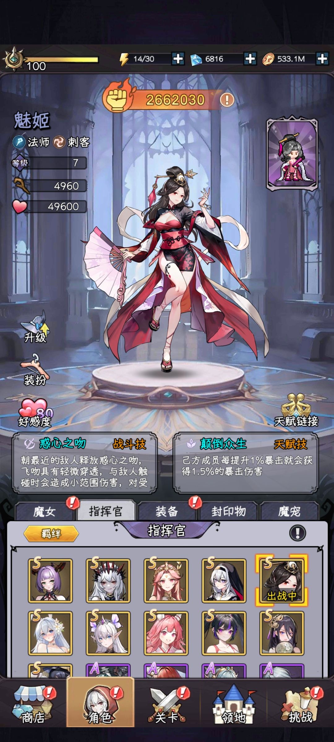 ⭐魔王篇 ①指挥官:恶之花,词条选择:切割次数(只有两次)>暴击率(开局暴击率获取较多的话先选攻击力)>攻击力>攻击冷却>破甲速度>技能范围。 ②链接:紫霞必备,魅姬(刚入坑的可能没有),机械大师次选,炼狱领主,琴女,爆破专家任选一个。 ③魔女选择:UR修女(需要觉醒增伤),S猎魔(觉醒秒小怪),一个刺客一个法师一个枪手。 ④装备选择:海神武器(金),海神书/振奋书,红石戒指必备(经验值加成),尖