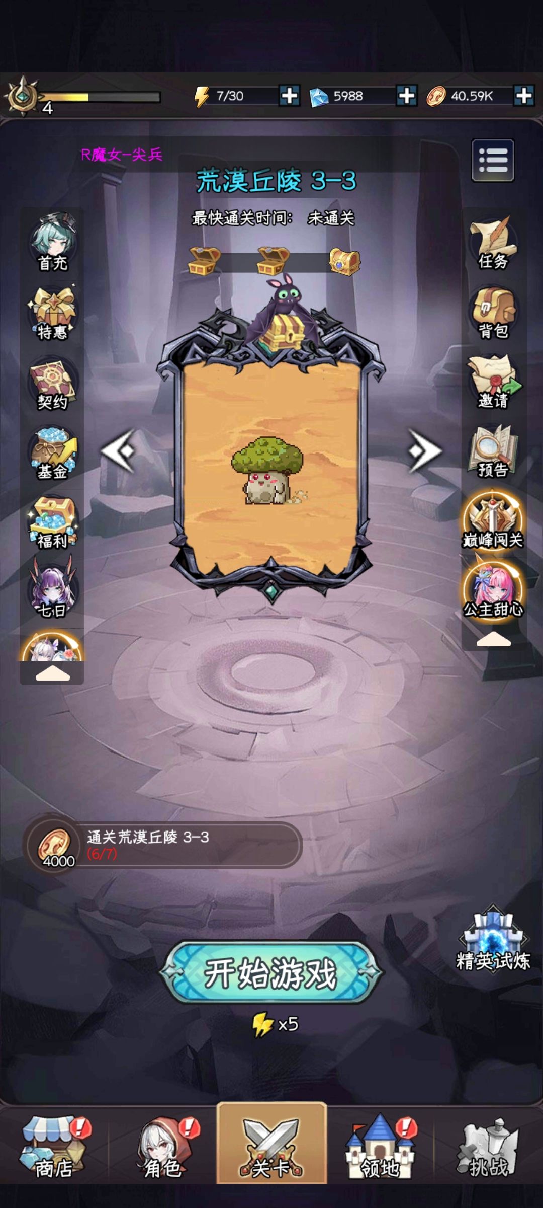 本次攻略一共有以下模块: 1:新人发展 2:主线任务 【1】新人发展: 首先新人打完前面几关后会开很多很多活动,也会送很多福利(主要契约石、钻石)。 契约石方面:因为现在是枪手刺客池子,而现版本主流也是恶魔猎手和法师,所以开服庆典送的契约石我认为有两种方案: ①用送的契约石头抽到一个s魔女(任意),剩下留着抽法师和恶魔猎手池子。 ②直接攒契约石,等恶魔猎手和法师池子。 钻石方面:钻石千万不
