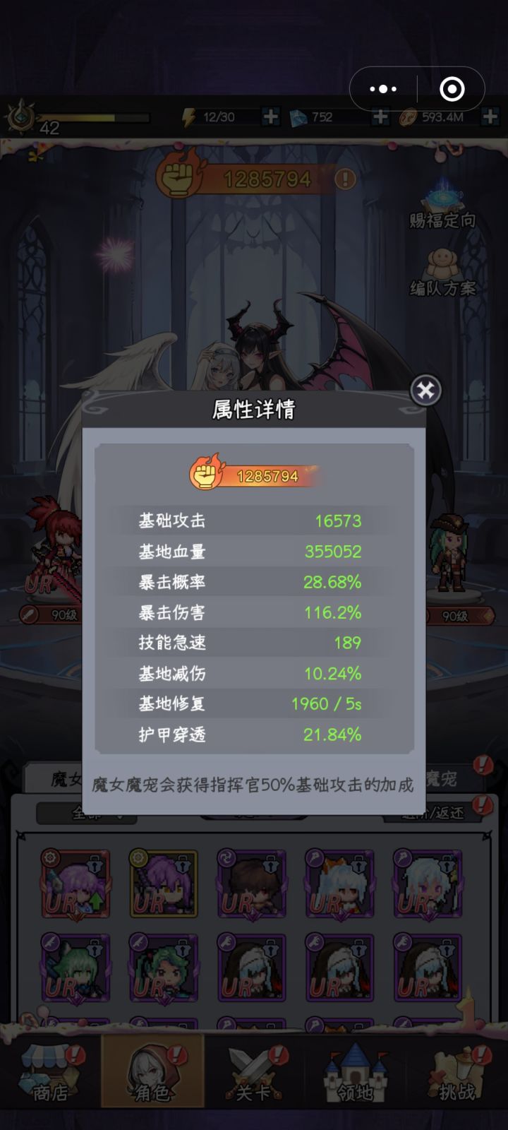 配置:木偶16 硬币12 链接:花 紫霞 琴女羁绊:3指挥官 1战 1枪 其他猎魔赐福:共鸣 超魔 魔爆 最后一个机械改良 机械回收都可 共鸣顺序我这套魔爆是第三个出的,叠不满,可以考虑这个顺序:魔爆 共鸣 超魔打的是开服25天的一个魔王,第一次用7命打了个1.47,升到10命后,第二次因为没拿到魔爆,伤害只打了1.42 有所下降,第三次同第一次流程,少选了一个暗影+50%持续时间,打了1
