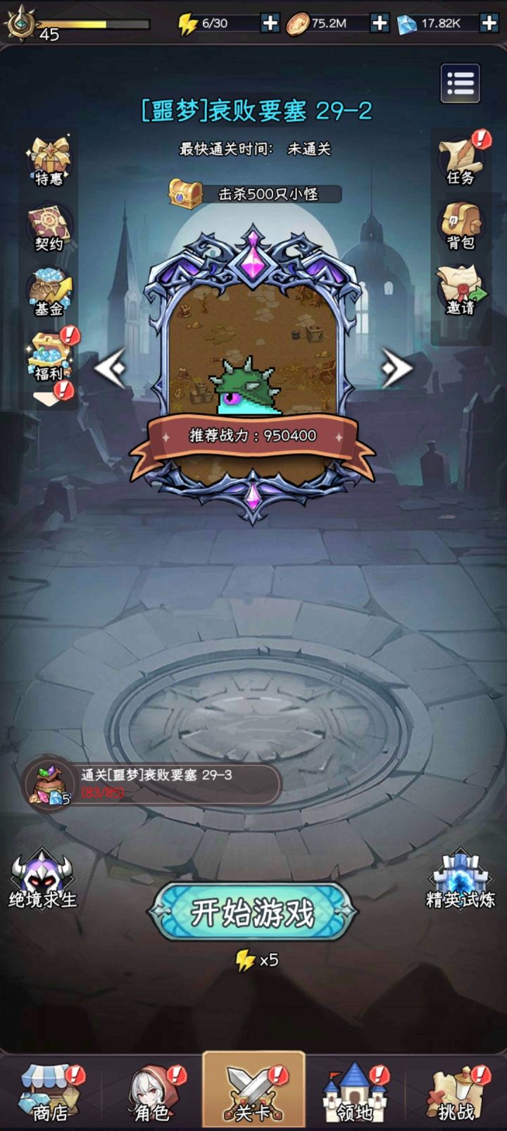 ⭐核心思路:此游戏的实战优先级是指挥官>魔女。⭐开局运营篇 换完兑换码开局钻石存住通关4-3抽恶之花,恶之花包含了战士和恶魔猎手两种职业,前期尽可能把恶魔猎手和战士赐福开出来为第五天的魔王做准备(第一名自选封印物)。极限与小游戏尽可能拿榜。小游戏100k以下拿第一不亏。小氪玩家月卡,永久卡或者7天的免广告卡,各种基金,第一天能推到7-3,第一个章节基金可以直接拿满,里面有9700+的钻石,存
