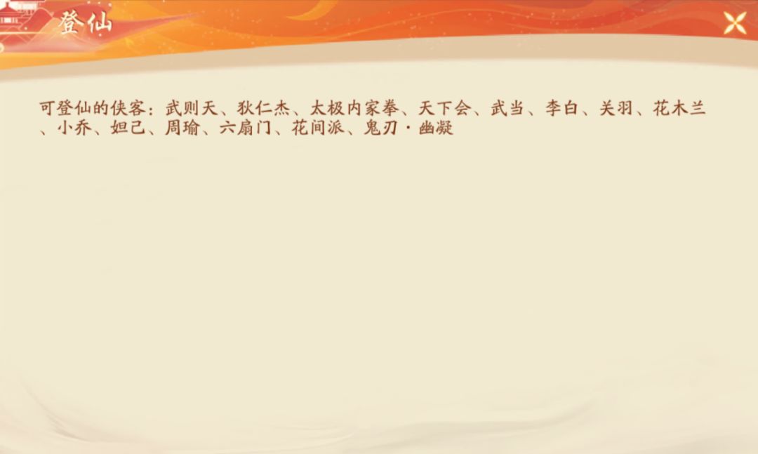【侠影奇谋】登仙侠客技能介绍及登仙推荐