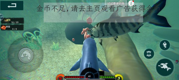 我玩了一个蛇头鱼,然后直接进化到35级,最厉害的大鲶鱼,我都三口就咬死了