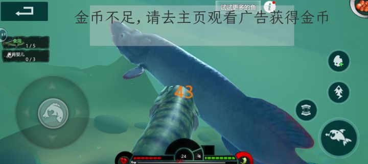 我玩了一个蛇头鱼,然后直接进化到35级,最厉害的大鲶鱼,我都三口就咬死了
