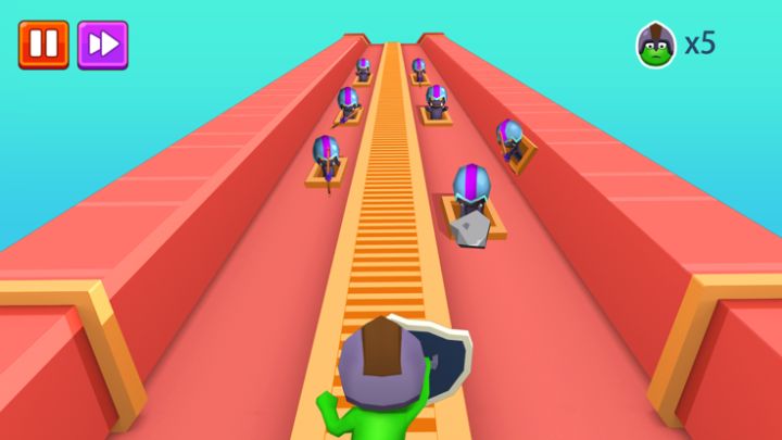 敌人可以使用大石头或弓箭进行攻击,玩家需要在敌人攻击时迅速举起盾牌进行防御,然后对对手进行反击