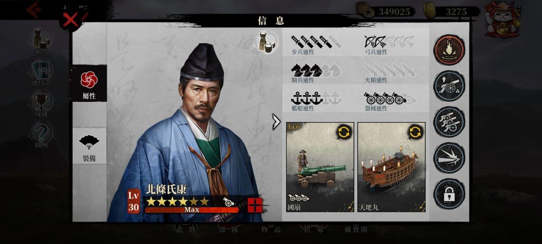 ▲前言: 回合制战棋策略游戏中一名角色强力与否,往往跟他自身的面板数值关系不是很大,但他在团队内的整体配合定位、关卡高压环境下的表现却很重要,而技能和装备的功效又恰恰体现于此。所以技能环境的适配性和机制的触发门槛更尤为重要。 也是本着这一初衷,为了方便更多的新人入坑/老手熟知/记录查看等,特此开设本帖以供大家惠阅及讨论。 【金色品质将领】 ▲织田信长(火枪) 兵种强度:★★★★★ 属性强度:★★★
