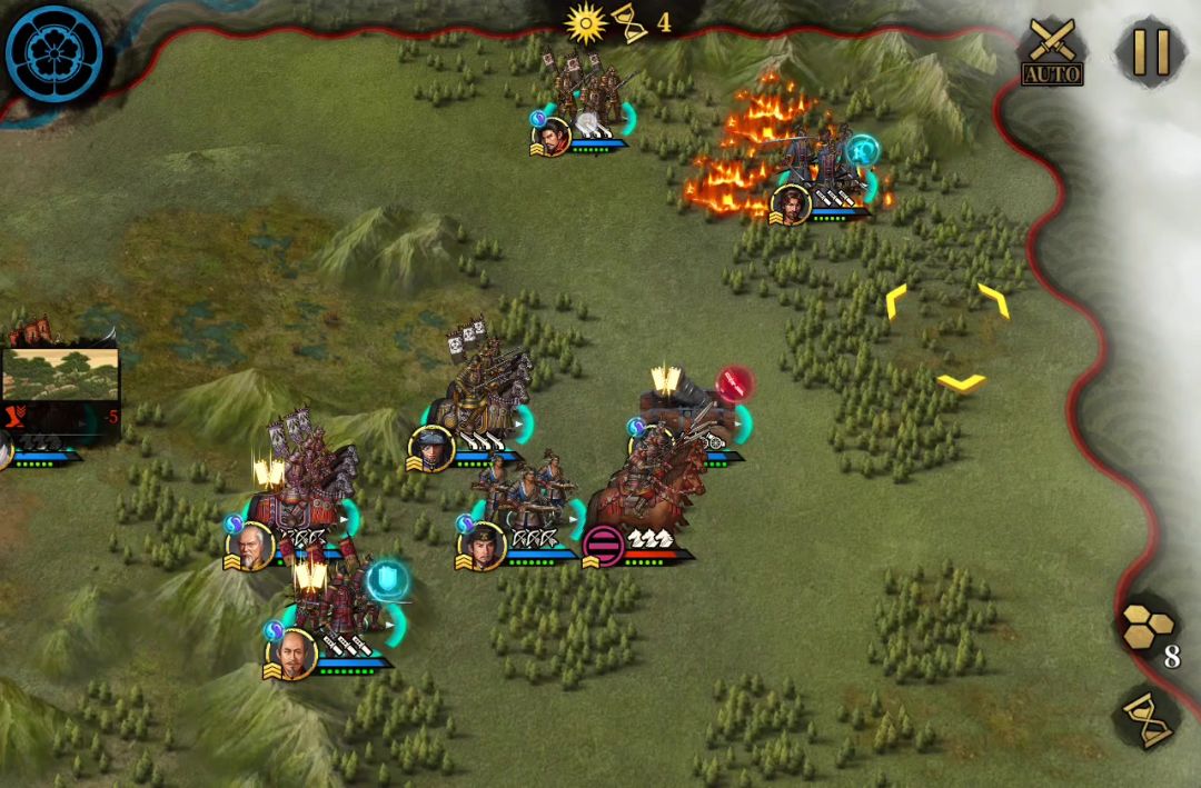 第一关思路,sl一个重伤,伊达站在林子里打,有增伤不反击,再随便补点输出,拉扯一下打,事实上我一开始以为是4关分18个将,所以一开始我只上前田,本多,岛津,伊达这四个将