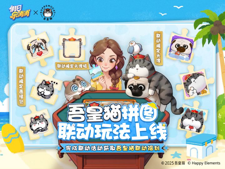 《假日乐消消》× 吾皇猫联动今日正式上线! 吾皇猫与巴扎黑在惬意的海岛上,到底会遇到什么样的故事? 爆料来袭,露台电影院正在播放路透,快戳视频一探吾皇高冷下的萌趣、巴扎黑的憨态,以及他们与毛毛、鸥霸玩转假日岛的精彩瞬间,感受满满的夏日热情和消除的畅快感。