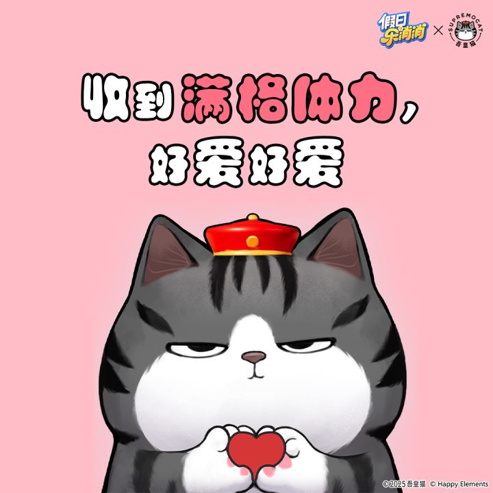 好爱好爱,满格体力好爽好爽,轻松三消好多好多,啊啊啊,是谁还没交出小鱼干!《假日乐消消》x吾皇猫联动持续中,超多福利带回家