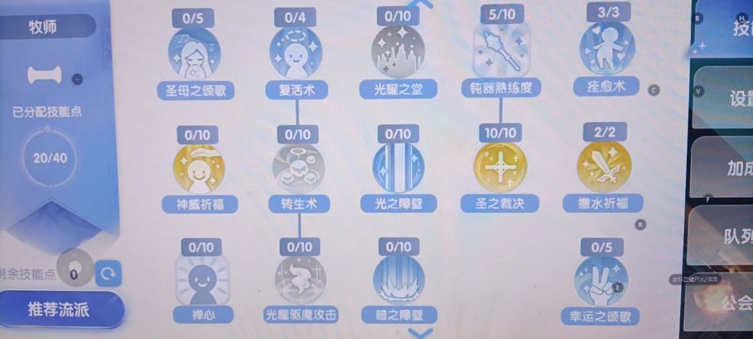新手入门攻略技巧内容(多图模式) 游戏中包含四大流派:赞美、敏捷暴击、驱魔和审判。 首先来看赞美流派:这一流派受到众多玩家的青睐,主要充当辅助角色,可以作为第二武器搭配,特别适合支援敏捷暴击和驱魔流派。 核心技能涵盖天使之赐福、加速术、治愈术和天使之障壁。多余的5点技能点可以考虑投入霸邪之阵。后期玩家可选择升级至圣母之祈福,效果更佳。#新游攻略先锋企划#攻略