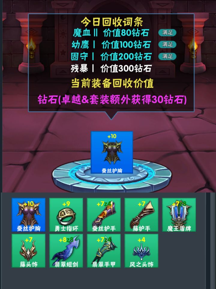 一开始我以为回收的是极品属性词条,后面贡献一个一转60级的号做研究才发现……回收的居然是强化词条(吐槽一句:居然不显示词条)这游戏估计很多不完善的,有时候词条相同回收栏没满也不显示残暴词条目前强化过12还没发现,估摸着是暴击有关