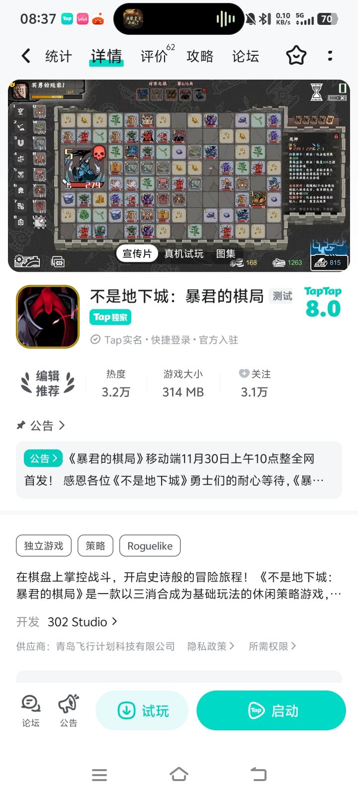 感恩各位《不是地下城》勇士们的耐心等待,《暴君的棋局》移动端终于定档啦!2024年11月30日上午10点整,我们在TapTap不见不散~#游戏安利 #游戏推荐 #单机游戏 #国产游戏 #steam游戏 #暴君的棋局 #不是地下城 #独立游戏