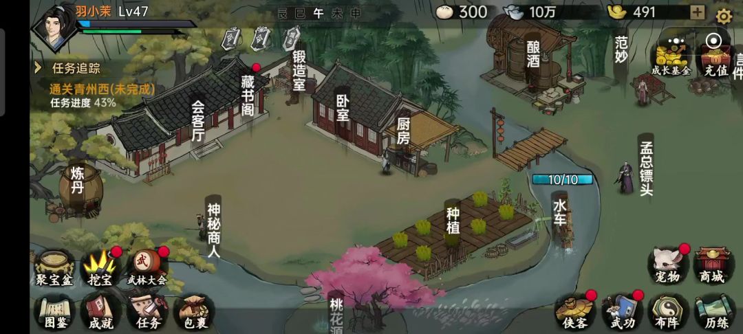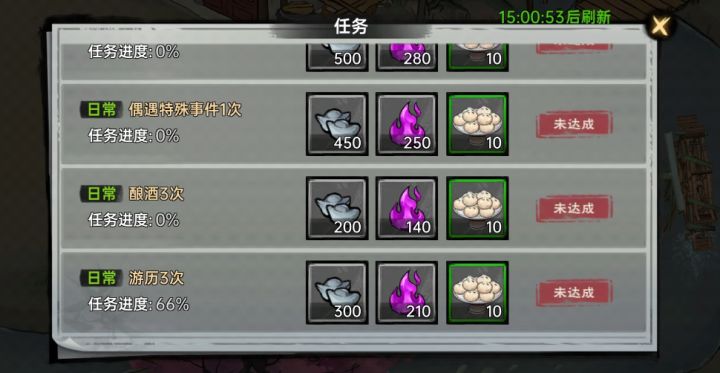 这期科普任务相关:游戏界面左下角的“任务”第一个主线任务:无脑推图,每第一次100%过一个新图都有相应的奖励,除开第一次100%完成,后面刷全图不再有奖励。(我通关辽东过后就没有主线任务了,可能是主线任务通关辽东就是毕业)第二个循环任务:完成这一栏下面的全部日常任务这个也就跟着完成了,完成后送天书1和侠客令牌2(每日必完成)通常日常任务一共六个,分别有以下9项选6:1.强化装备,锻造室处
