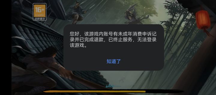 显示未成年充值已退款,不让登陆了,哪有未成年?哪有已退款?