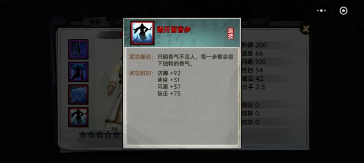 这里我给萌新玩家分析一下所谓的“三小强”,三个初始值出手最快2.5侠客,零氪微氪就可以刷出来的最强红侠客(刷到的几率纯看脸,没有捷径,当然买别人已经刷到的号除外)。郭云天:自带红拳法,紫色内功,橙色轻功,橙色绝技(气血,格挡,狂暴)。张益和:自带橙色刀法,红色内功,橙色轻功,橙色绝技(气血,格挡,抗暴)。夜渊:自带紫色剑法,紫色内功,红色轻功,红色绝技(防御,速度,闪避,破击)。三位侠客单