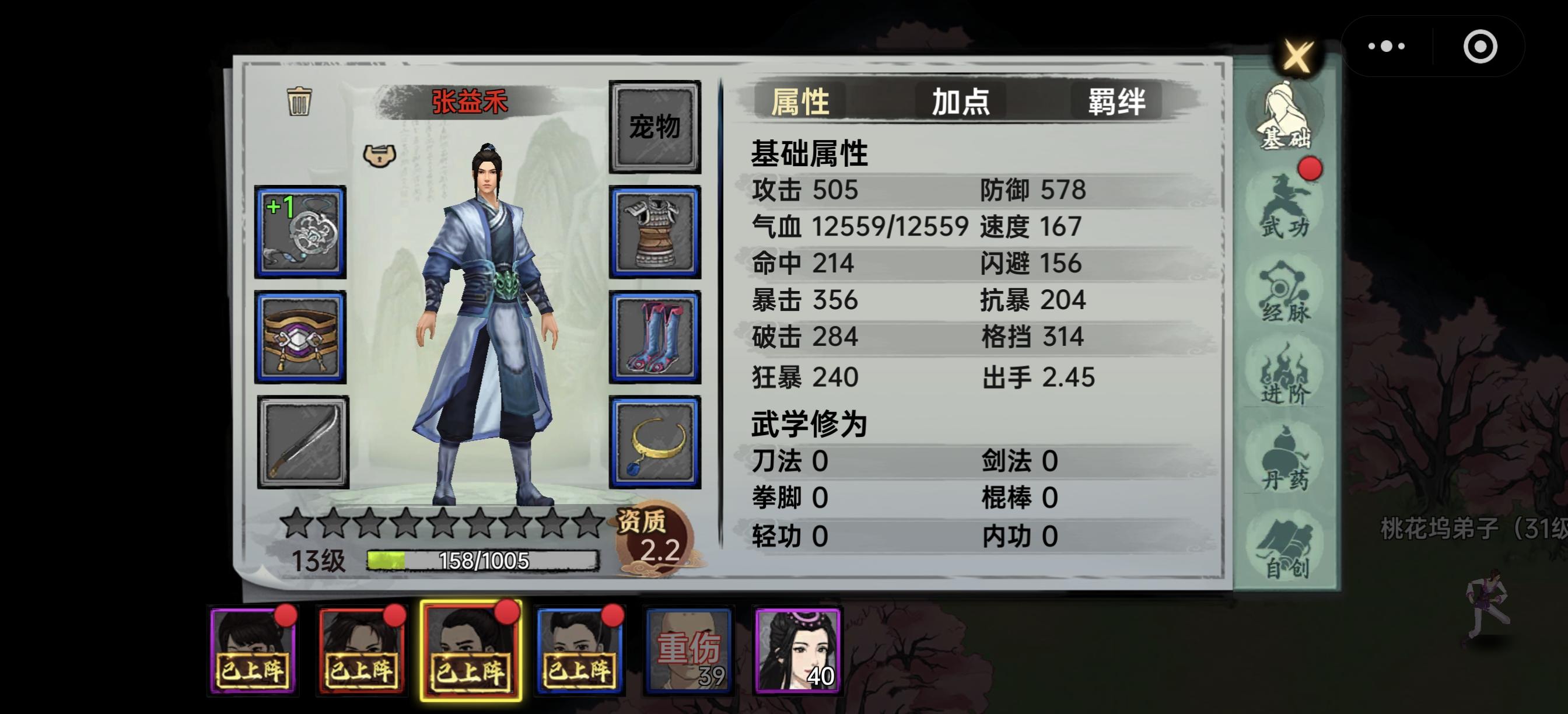 萌新开局一个郭金玉(不是郭云天)艰难刷级刷到40级,真的是一掌一掌拼好掌打到青州,好不容易熬出头,刷了一个张益禾,郭老师劳苦功高,后面可以逐渐转副c了。但张初始是用刀的,我目前手里红群攻目前只有红棍,是先让张转棍,还是等等,等刀的群攻。