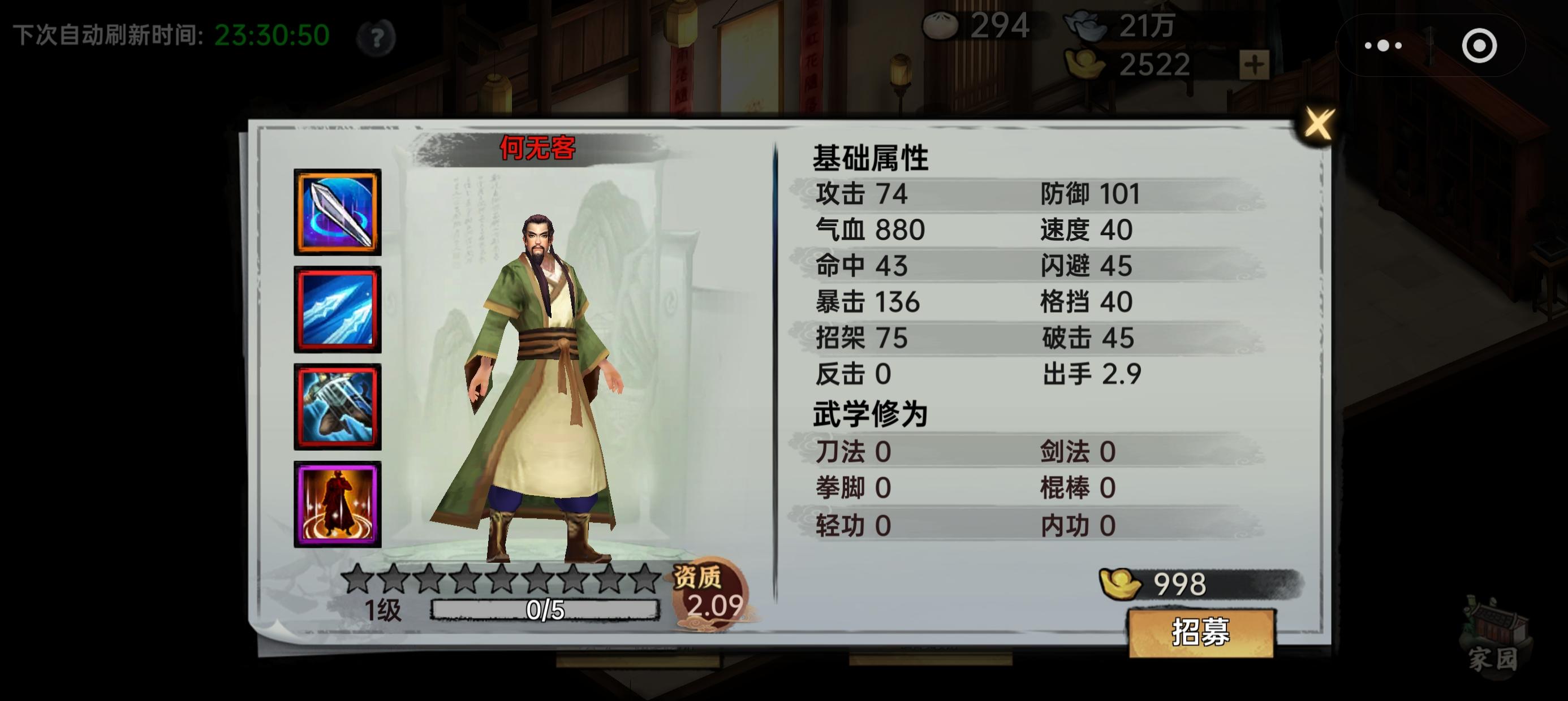开局两周了。抽到个郭金玉,用来当护道人,目标是秒青州东和桃花。学了紫色外功,蓝绿轻、内。目前用蓝色群拳打允洲东,10秒一个怪。今天10连出了红群拳,学吗,还是给主c留着