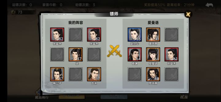 因为昨晚上押镖被人从头劫到尾,所以今晚也准备劫一个结果,这样的队伍叫人触目惊心啊!不知道官方是怎么看待这些严重超载问题的。截了图,然后就找了个主角橙色四个随从都紫色的37级小朋友去搞第一次的亲密接触,结果就是我38级三红两橙(俩张一香一病带主角)被直接秒了?!我还没看清呢,都还没动手,对面已经把我全剧终了,震惊得都忘记截图了,只好发超载镖车图。顺便问一句,这游戏开了挂用了脚本没有后