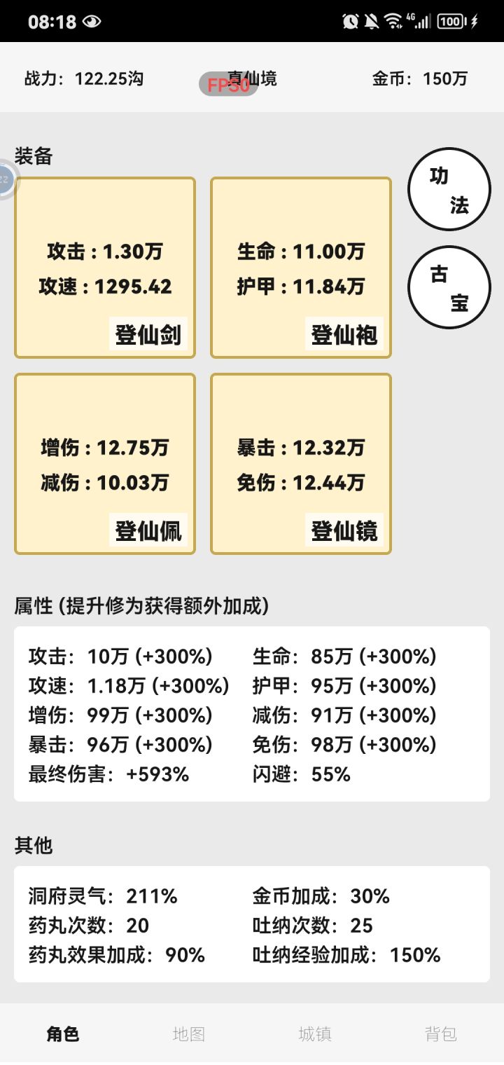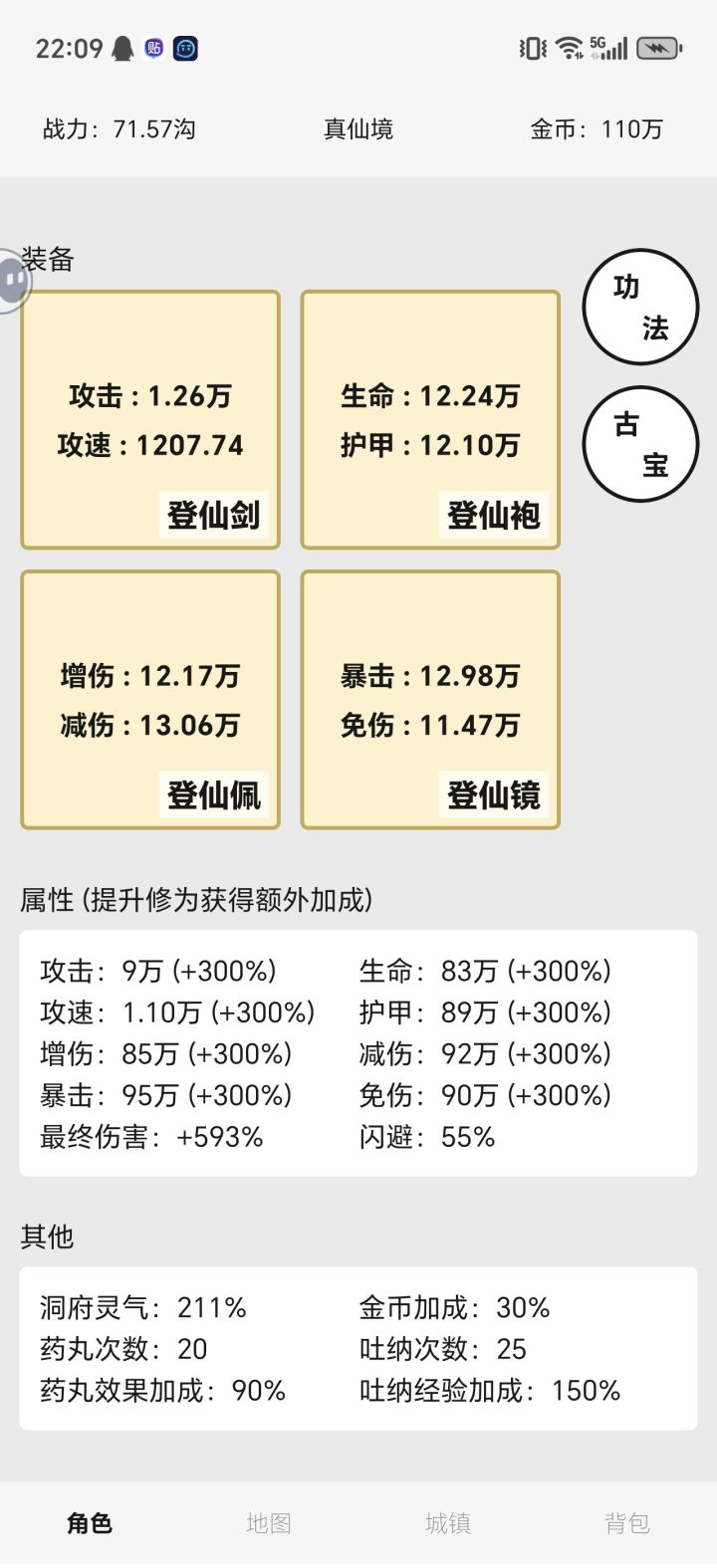 第一无广告无内购、游戏内容也不复杂,战力增长就是用金币换寻觅令然后去古宝抽,或者买功法,或者炼丹炼器配合古宝