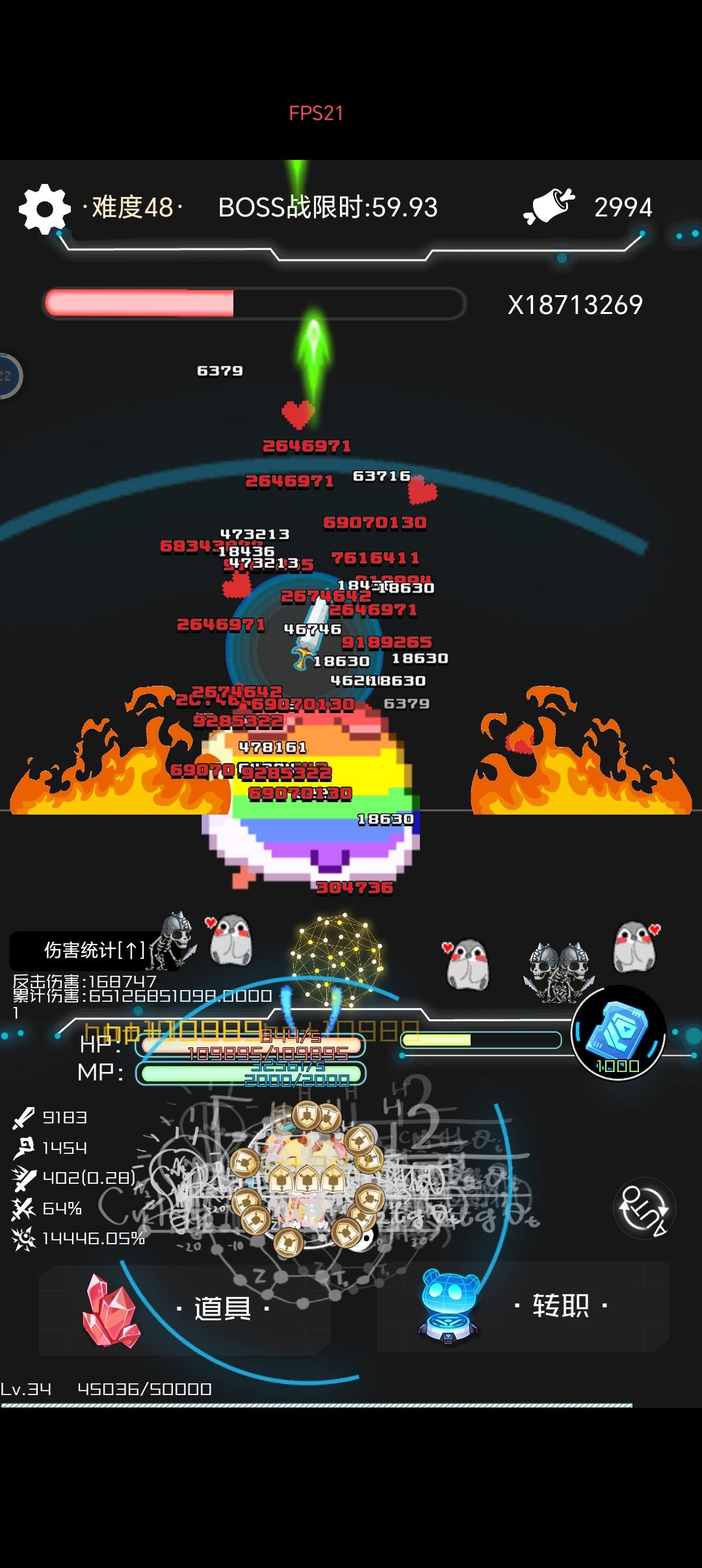 图片没截,说一下策略。出来先击杀加生命。技能选机械核心。道具用符,绑架召唤物那个。多用各种召唤物,攒多了再使用道具绑架。48关几乎所有角色都能过。
