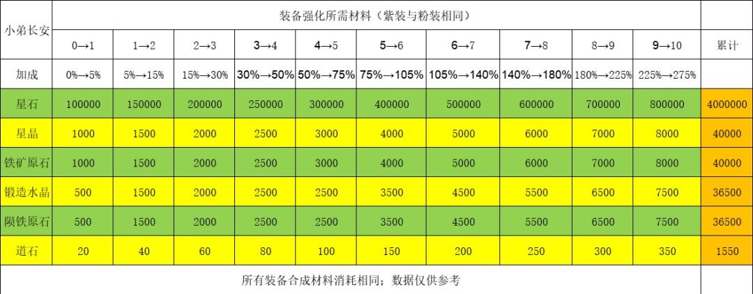 1、装备强化所需要的各种材料及强化加成 每种只需要一件+10装备,升级粉装不消耗原装备,但是同一件粉装只能生效3件,期待后面红装、金装各种颜色装备。 2、炼丹需要的各种材料(加成后面可以简单的统计一下) 现在炼丹开放了上限,与修炼等级挂钩,但是仍需要避免每天的商店可能会把低阶丹药买到上限。 3、升级天赋所需要的材料 目前版本天赋上限32级,根据自己属性需要合理安排升级天赋顺序,强调一下 需要先升