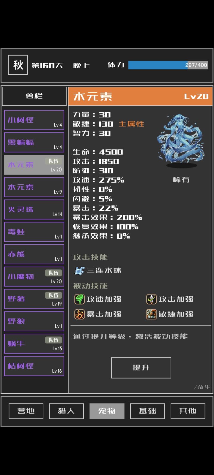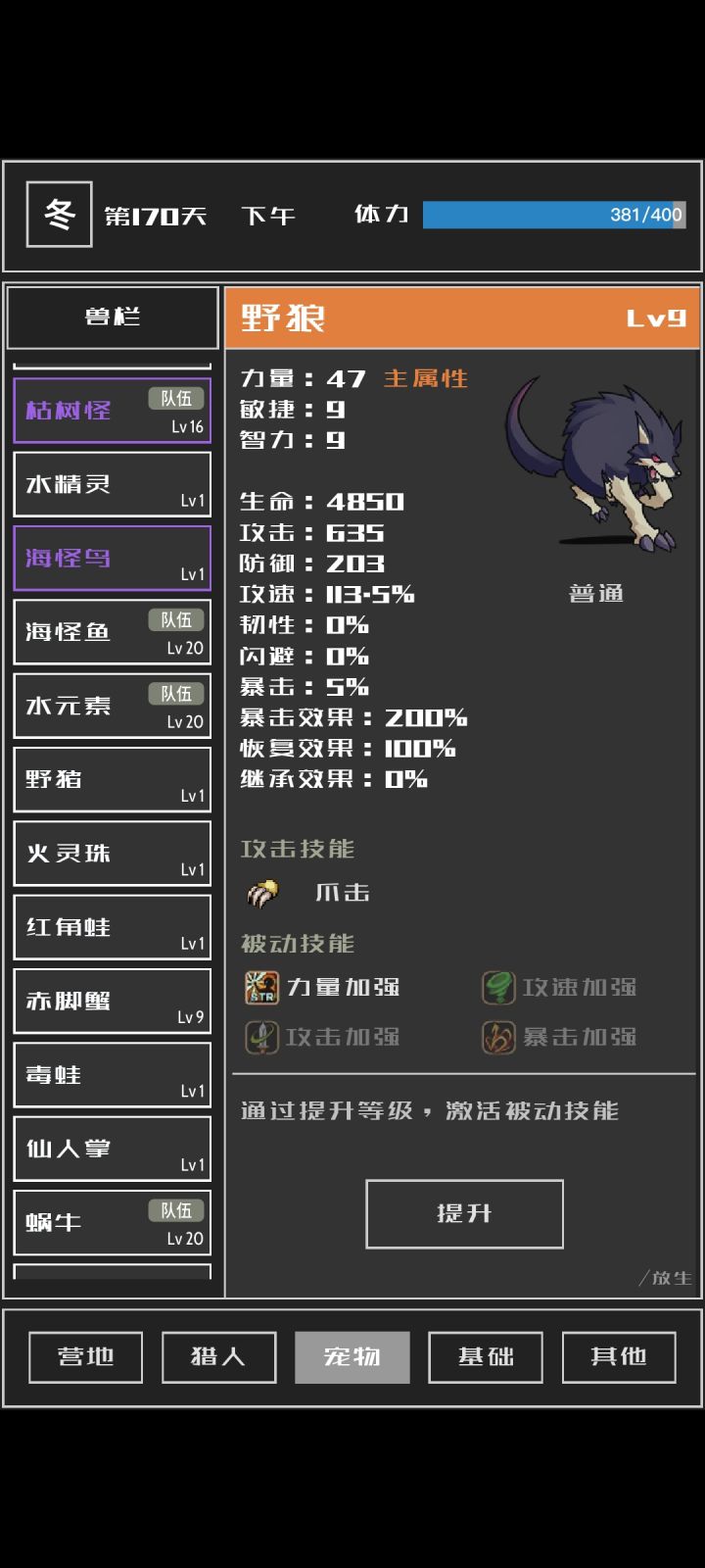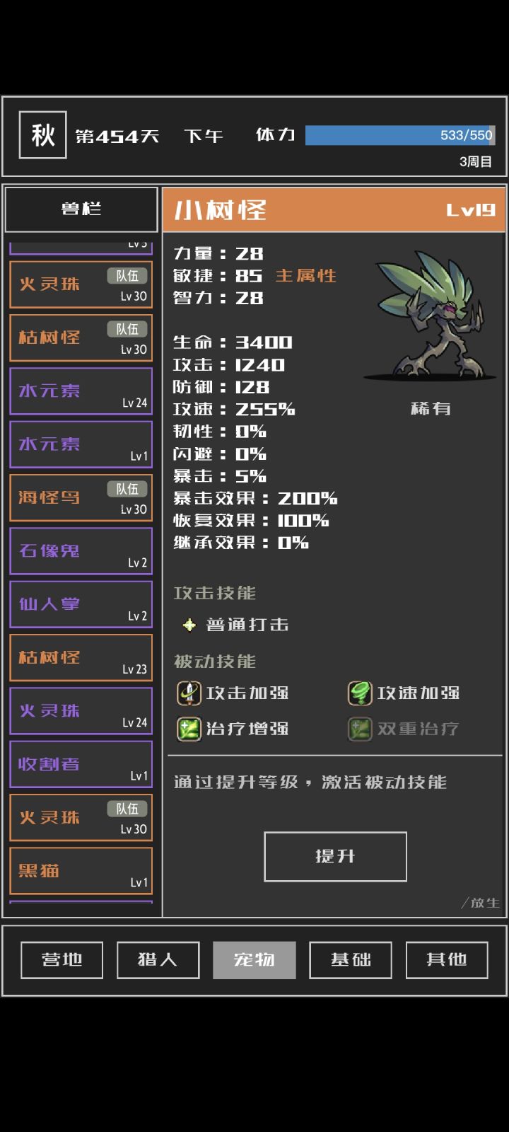 按图排序,特殊一点的技能我加个图,不然就是那种没啥特殊机制,加属性的技能,如果有啥宠物我没放上来的,可以评论告诉我。图一:猪图一:蜂(两蜂到五控制,不额外叠加,对方免伤状态下应该也能叠,技能攻击范围可打二)图一:狼(感谢手机用户8207221在评论中指出,满级加25%暴击,这是我见过最高的宠物暴击数值怪)图一:小树怪(二十级双重治疗治疗二)图一:枯树(十五级治疗范围技能+2,实际治疗5,