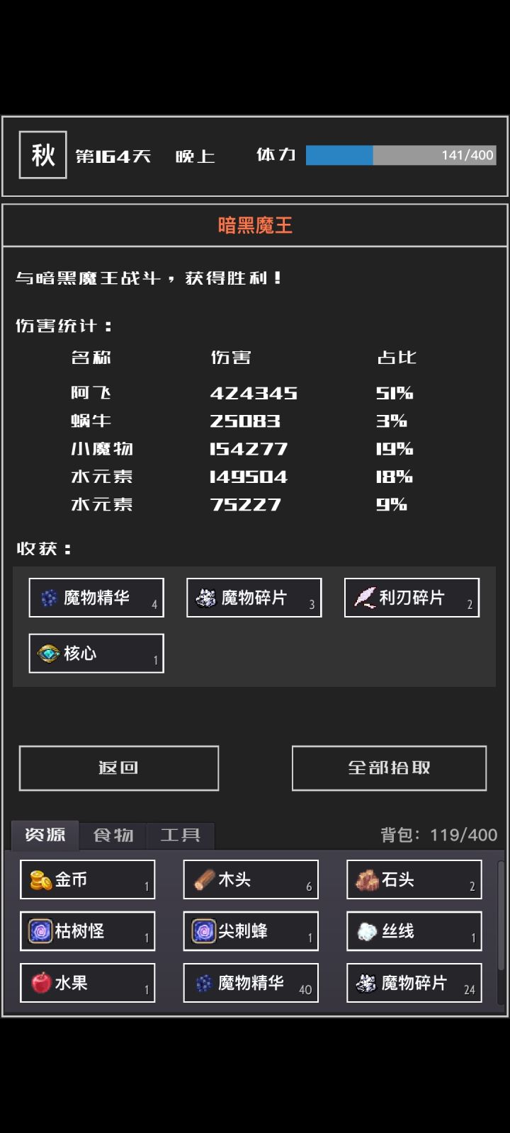 1 选阿飞,阿飞不依赖枯树怪。其它两个阵容要带枯树怪。2 阵容,阿飞,水元素,蜗牛,野猪,小魔物。可以带两个蜗牛或者带两个水元素,放弃野猪。我第一次过魔王的时候带的是野猪,为了给全队加血加防御。第二次把野猪换成9级水元素也轻松过。小魔物也是半辅助破甲的,可以把小魔物换成野猪或者枯树怪。3 枯树怪太拖进度!第三个冬天我才抓到紫色枯树怪!第一个冬天,就抓到了紫色水元素,还是两个。4水元素是中期