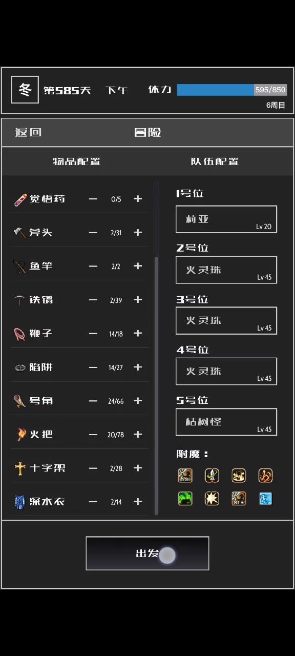 火灵珠:我们只管打怪过图的速度!5号附魔位枯树:好的 怪物输出过高掉血太快,不用担心,看我奶量!最终带的附魔 攻击 血量 暴击 闪避 力量 敏捷 枯树治疗 宠物继承 !装备天行套装 勇气项链 神圣战锤!