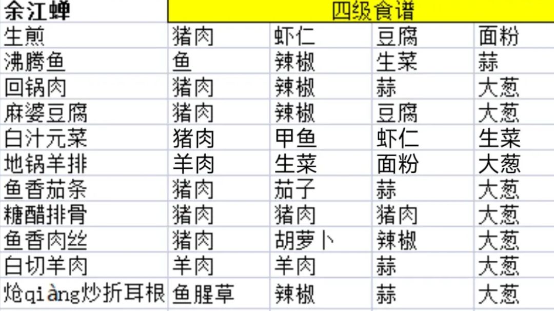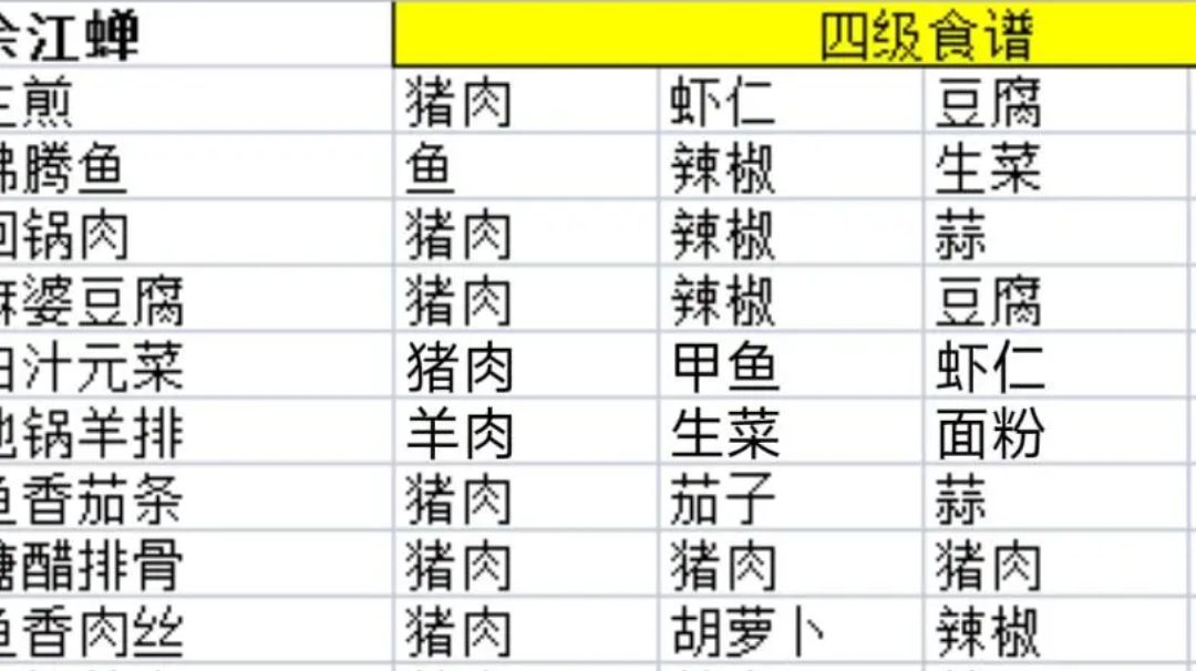 1~4级饭庄食谱配方与做菜技巧